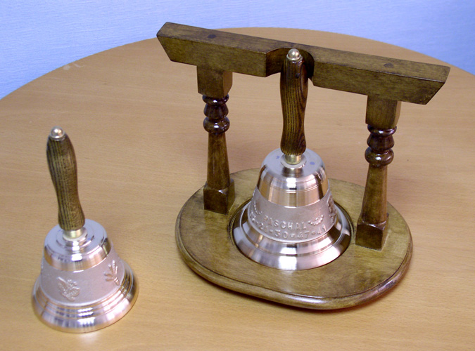 Clochettes à main Les clochettes de table sont réalisées en bronze de cloche de grande qualité avec finition en manche en bois du diamètre 5 cm à 140 cm.Personnalisation possible pour un événement ou votre projet. Cliquez ici pour toutes demandes de renseignements |